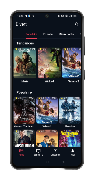 Notre application a été conçue pour les amoureux du cinéma. Que vous soyez fan de blockbusters, de thrillers captivants ou de séries palpitantes, vous trouverez votre bonheur ici.